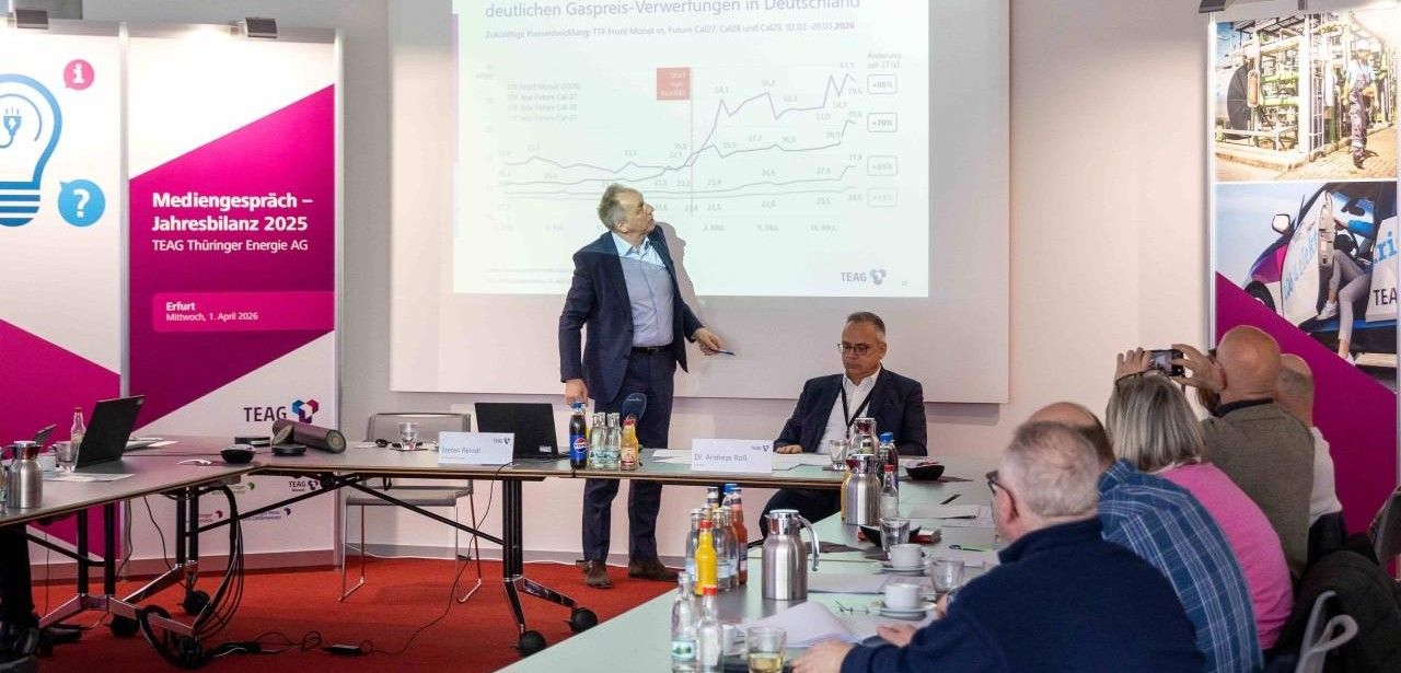 Auswirkungen der Schließung der Straße von Hormus im Rahmen des Iran-Konflikts führten zu einer erheblichen Verknappung global verfügbarer Erdgasmengen. In der Folge stiegen die Beschaffungspreise um bis zu achtzig Prozent an, wenngleich die Intensität der Preisrallye nicht an das Rekordniveau des Jahres 2022 heranreicht. Die TEAG beobachtet diese Marktveränderungen kontinuierlich, setzt auf einen breit diversifizierten Gaszukauf und profitiert zugleich von einem erhöhten Anteil erneuerbarer Stromproduktion und stärkt damit die Versorgungssicherheit.